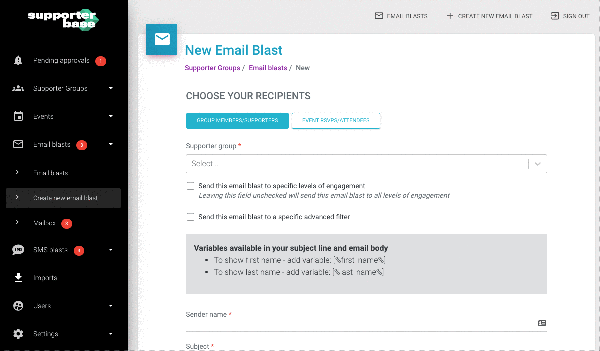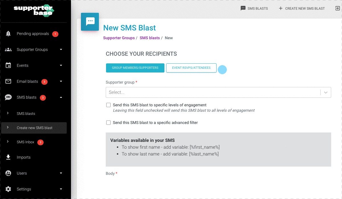 Step # 2: Continue using SupporterBase to send targeted email and/or SMS blasts to promote the event.